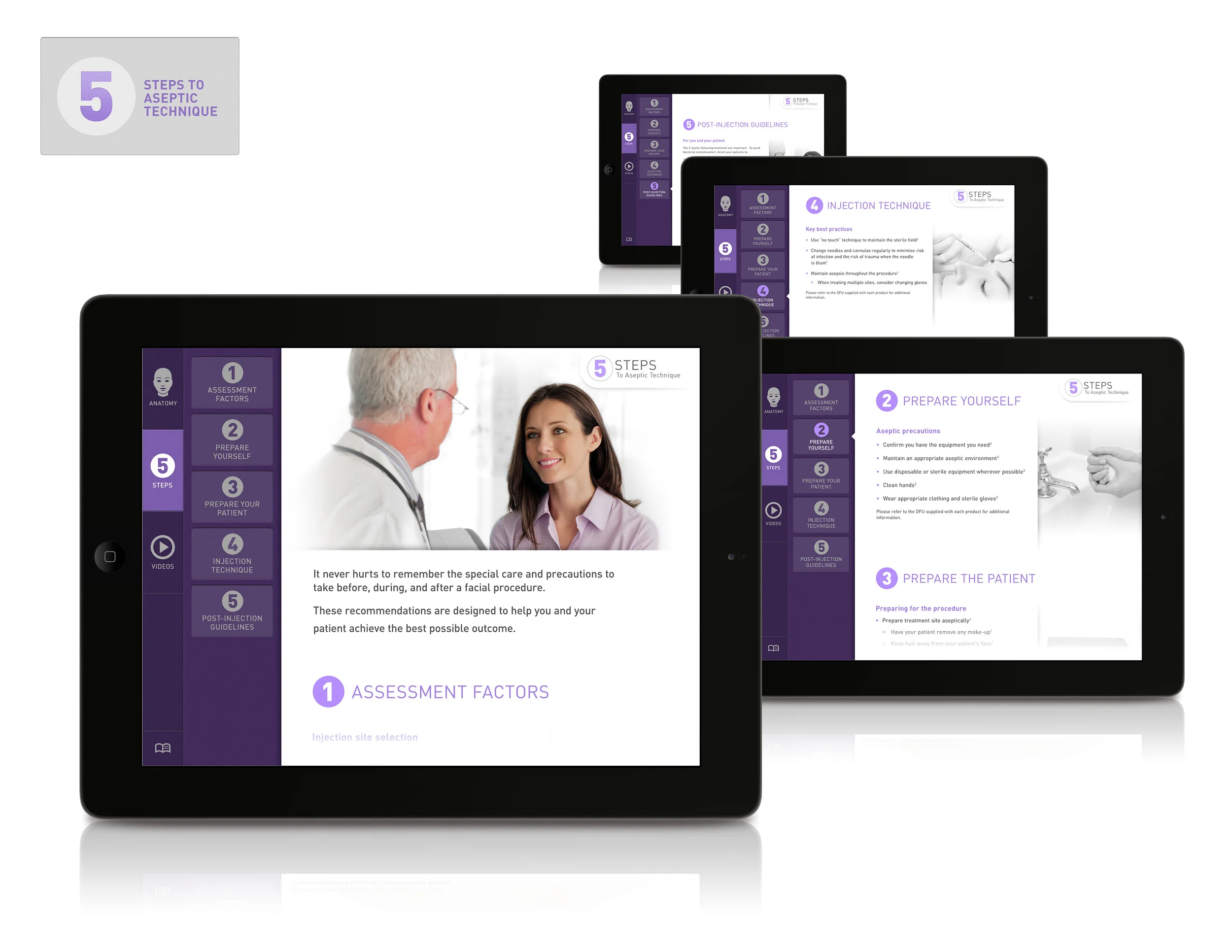 This iPad application gives physicians an easy-to-use tool to interact with a patient's facial anatomy and effectively talk about recommended services. Secondly, it includes a resource section where HCPs can see proper injection techniques for Botox and Juvéderm fillers by viewing helpful "how to" videos.